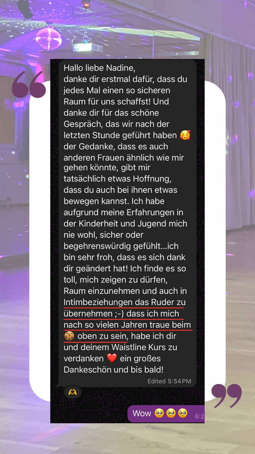 Thanks so much for everything I’m feeling it transfer into everything I do! Still not perfect but always a work in progress.